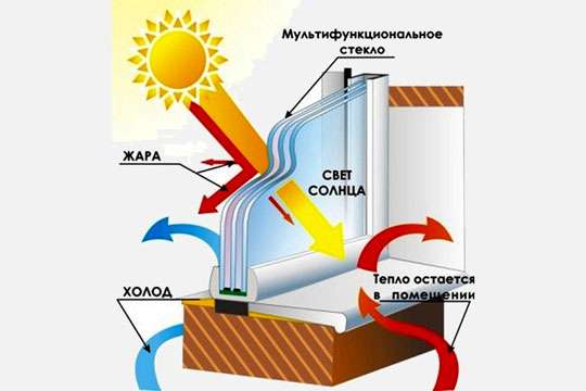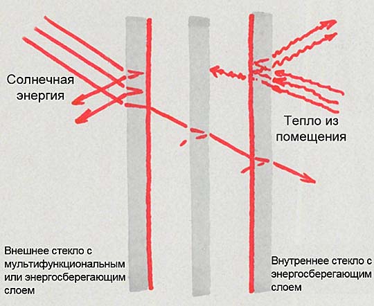 Однако надо принимать во внимание, что окна с таким стеклом снижают поступление солнечного тепла как летом, так и зимой. Т. е. уменьшают дополнительный прогрев солнцем помещений зимой, соответственно, несколько повышая расходы на отопление.
