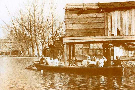 Самым грандиозным был разлив 1931-го года. Мягкое дождливое потепление началось 14 апреля и ничего плохого не предвещало, но спустя неделю температура неожиданно подскочила, снега в верховьях Днепра начали стремительно таять, дожди усилились, и река взбухла. Вода хлынула на подольские улицы, затопила островные и левобережные поселения.