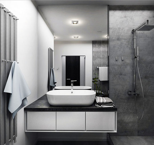 Также, представляем квартиру в современном стиле. Стоит обратить внимание на использование декоративной штукатурки с бархатным видом. На ощупь она также приятна, бархатна.Серый цвет является цветом интеллекта. Также он добавляет уюта и ощущение комфорта. На фоне серого цвета все уравновешивается и не раздражает.
