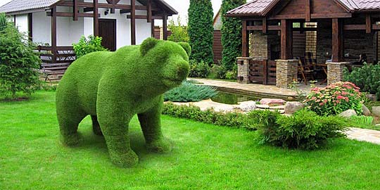 Создание сложных фигур действительно требует мастерства и терпения, простой стрижкой в этом случае, не обойтись, требуется проволочный каркас и масса труда. Именно, каркасы из оцинкованной проволоки или кручёной шестиугольной сетки позволяют добиться точности всех деталей живой зелёной скульптуры, а использование различных растений и цветов поможет создать яркую красочную картину.