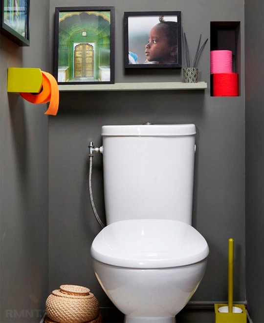 Тесный санузел просто нуждается в ярких деталях. Тесные санузлы дизайнеры советуют оформлять в светлой гамме, не перегружать деталями. Впрочем, такие небольшие предметы декора, как полочка с подсвечниками, комнатным цветком, статуэткой и картина никогда не будут лишними.