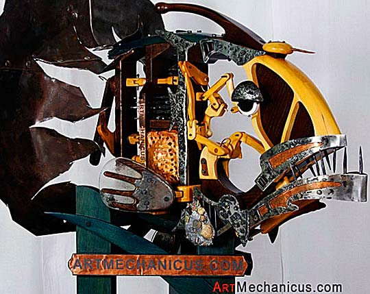 Мастера художественной группы ArtMechanicus.com обратились к природе и создали целую серию кинетических скульптур «Механические рыбы», которые созданы из самых разных подручных материалов.
