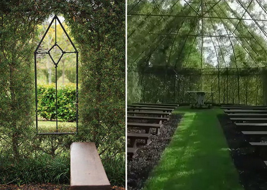 Каркас церкви сделан из металла, а стены и потолок - из живых ветвей деревьев