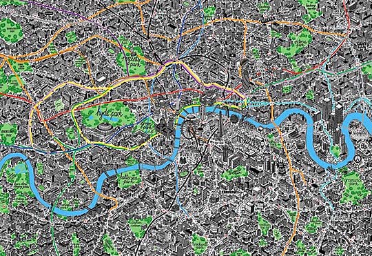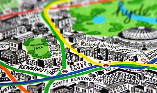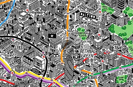 Дженни Спаркс нарисовала на London by hand все основные достопримечательности центральной части Лондона, прорисовав улицы, кварталы и отдельные здания. К примеру, на этой карте указаны музеи, магазины, рестораны и кафе, государственные учреждения, туристические офисы, спортивные объекты, исторические места, места рождения и жизни знаменитостей былых эпох и нашего времени, линии и станции метрополитена.