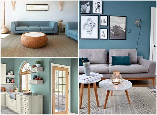 Оттенки синего цвета не утратят свою популярность и в новом году. Однако, на смену насыщенным и глубоким цветам, в 2018 придут приглушенные оттенки, получающиеся при смешивании синего, серого и зеленого цветов. Такие тона лучше всего подойдут для оформления спален, детских, а также помещений, расположенных на солнечной стороне дома.