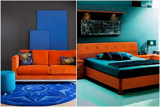 Дуэт синего и оранжевого цвета был признан самым модным сочетанием 2018 года. Такое динамичное решение прекрасно подойдет для оформления гостиной, кухни или кабинета. Характеристики этих цветов способны зарядить помещение и его обитателей позитивной энергией, вдохновением и настроить на рабочий процесс.