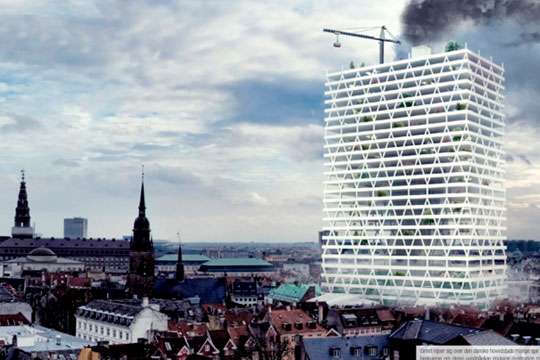 В связи с этим, в Норвегии разразился настоящий скандал: студент Мартин Макшерри предложил разместить в центре Осло зеленый небоскреб для похорон. В комплекте со зданием предусмотрен строительный кран — с помощью него будут возводить все новые и новые этажи и поднимать гробы на незанятые уровни. Легкая многоуровневая конструкция пронизана светом и позволяет выращивать растения на каждом этаже.
