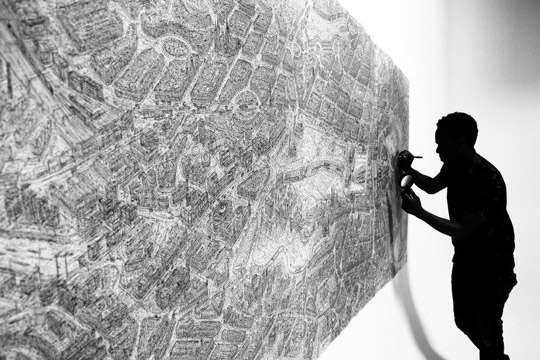 Как стало известно ProfiDOM.com.ua, начинается все с того, что Лорна делает простенький набросок карандашом, который Карл затем очерчивает чернилами. Со временем "скелет" города обрастает, новые слои добавляются, а старые стираются. Весь процесс документируется в фотографиях.