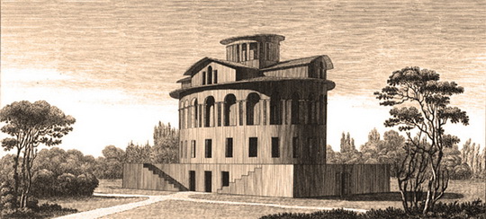 Незважаючи на те, що будівля має форму сфери, її можна вважати класичною завдяки колонам, а також форми дверей, подібні до форми храму. Крім того, геометрична архітектура з поглибленим двором, розділеним на чотири менші демонструє велику фантазію творчості архітектора в його проекті. Всередині є кухня з каміном і чотири спальні та навіть теплиці і стайні.
