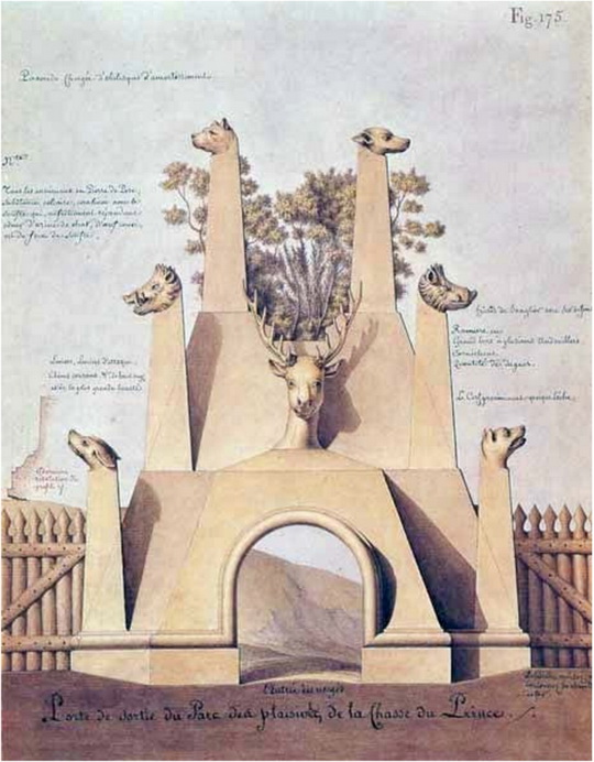 Ще один французький архітектор, який підіймає градус абсурдності трішки вище. Якщо попередні вимальовували архітектурні замки як художники класики, то Лекю виступає наче якийсь шаман-карикатурист від архітектури. Це не означає, що він гірше, але якщо Леду був протосюрреалістом, то Лекю сюрреаліст повноцінний, у лапках звичайно.