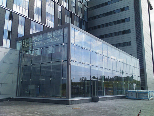 Снаружи спайдерные системы остекления представляют сплошную поверхность с еле различимыми швами, которые не влияют на восприятие архитектурного облика здания, а благодаря герметикам, обеспечивается высокий уровень теплоизоляции и защиты от влаги.