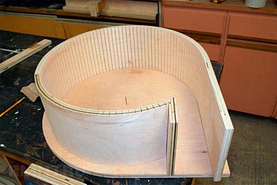 В простейшем случае, основа образуется относительно толстым перфорированным листом фанеры, допустимый радиус изгиба которой заведомо ниже требуемого. Такая деталь, скорее всего, не будет обладать необходимой прочностью, поэтому впоследствии её «обшивают» ещё несколькими тонкими слоями. В каждом случае выполняется клеевое соединение по всей плоскости, листы предварительно размягчают, чтобы они не выправляли форму сердечника.