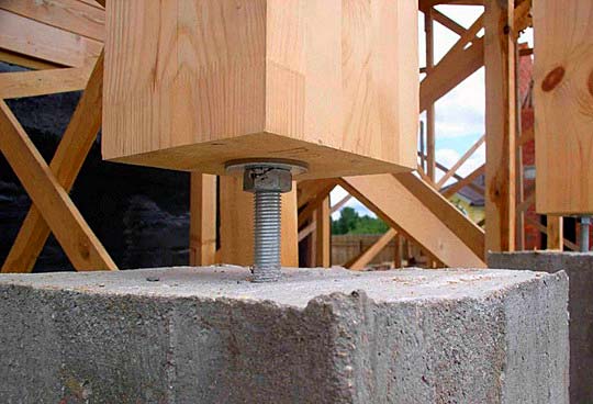 Ставится винтовой компенсатор непосредственно на фундамент дома, опорная пластина надёжно прикручивается. Процесс установки требует соблюдений правил безопасности, самостоятельно установить винтовые компенсаторы сложно, потребуются помощники. Регулировать компенсаторы в процессе усадки может сам владелец дома.