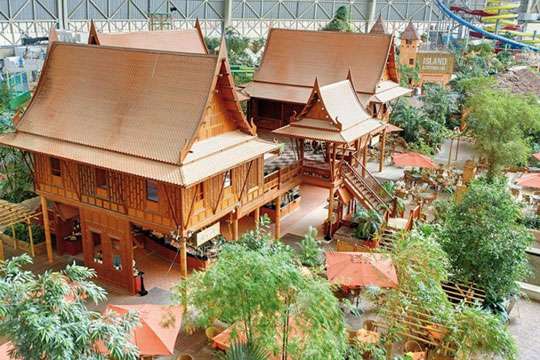 Для удобства отдыхающих в ангаре построены бары-хижины в стиле все тех же тропиков, а для юных посетителей предусмотрено несколько специальных зон отдыха и игровые площадки. Здесь каждый найдет для себя отдых по вкусу, от мала до велика. Нравится отдых «дикарями»? Без проблем — специально для этого в «глухой» области обустроен городок с палатками. На острове располагается комфортабельный отель, так что любой желающий может остаться здесь на сколько хочет.