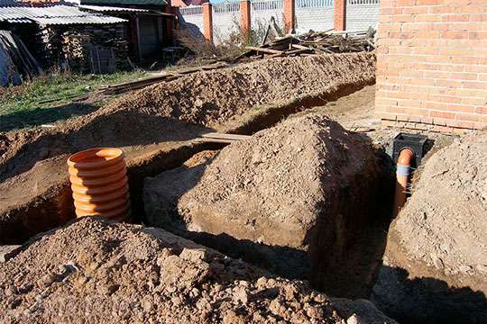 Укладку труб производят с уклоном, который составляет 2 см на 1 метр траншеи. Уклон производят в сторону колодца, вода из которого будет отводиться с участка.