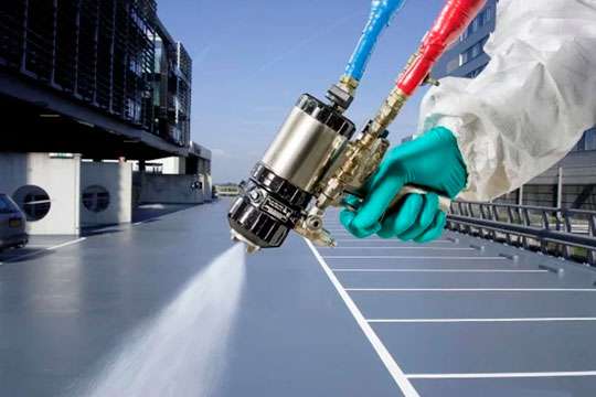 Полимочевина (полиурия, поликарбамид) — это толстослойное, очень эластичное монолитное покрытие, которое представляет собой пленку. Она образуется в процессе напыления высокореактивной двухкомпонентной системы на поверхность.