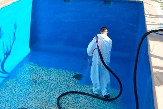 Далее, можно приступать к напылению материала. Наиболее часто используемым способом нанесения полимера, который применяется в 95% случаев, является напыление с помощью специального оборудования. Операция проводится в несколько этапов: