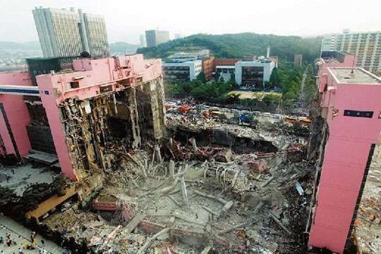 Этому пятиэтажному зданию было всего семь лет, когда оно внезапно зашаталось и рухнуло. 145 человек погибли, 166 получили травмы. Как выяснилось позже, при строительстве использовались дешёвые стальные колонны, которые не выдержали веса множества тяжелых машин, которые были установлены на верхних этажах.
