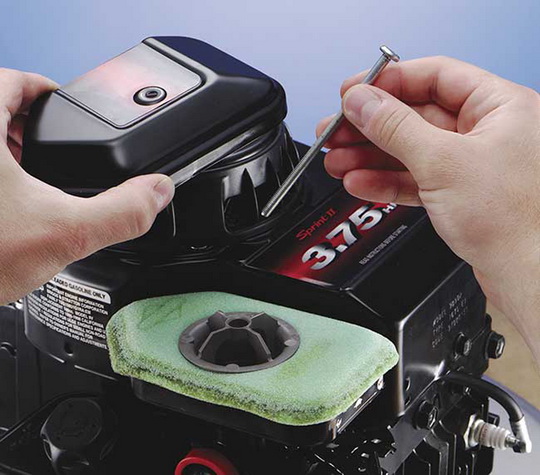 После очистки косилки снаружи можно провести чистку или замену воздушного фильтра