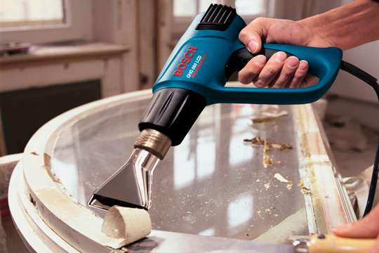 Но, есть и прямая компоновка (Bosch GHG 600 CE), может не такая удобная и безопасная, но определённо более проходимая, позволяющая добраться до самых зажатых мест (представьте, что вам нужно очистить от краски чугунный радиатор). Фен Black&Decker KX1692 имеет поворотную конструкцию и может, при необходимости, принимать прямую или Г-образную форму. Противоскользящие накладки на рукоятке серьёзно повышают комфорт и безопасность при работе термофеном.