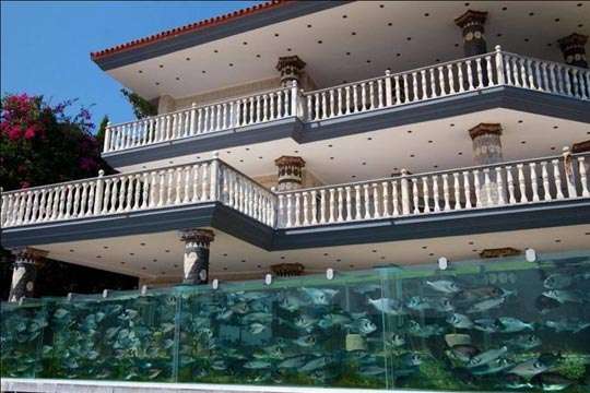 Несколько лет назад бизнесмену пришла в голову идея построить забор из аквариума и запустить туда морских обитателей из Эгейского моря. Постройка огромного прозрачного аквариума не заняла много времени и являлась, пожалуй, самой простой задачей. Куда сложнее было проложить до моря трубопровод, чтобы аквариум постоянно наполнялся морской водой.