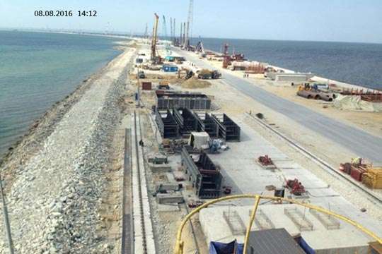 Строительство Керченского моста идет непрерывно. Огромные затраты, очень спорные инженерные решения, однако, стройка продвигается. Вот, визуализация стройки, сделанная сегодня, буквально 2 часа назад.