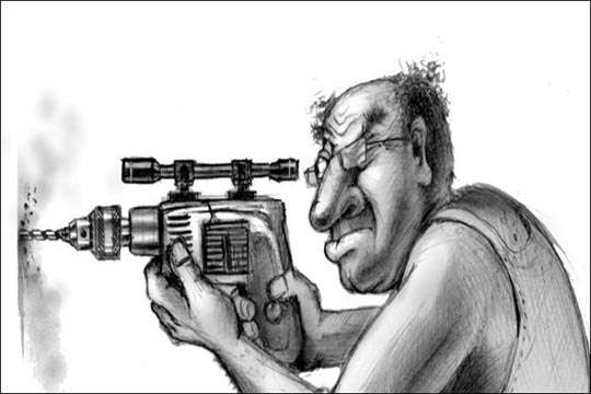Перфоратор - хороший и мощный инструмент. Но, оказывается, его можно, даже, не включать в сеть, как это делает рабочий из Индии. Но если еще и включить ...